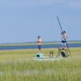 Back country fishermen have been enjoying extremely high flood tides recently with strong northeast winds and a present new moon. Flood tides began on September 27th with the arrival of a “New Moon” and lasted right through this past weekend. In some areas of the marsh, the flood tides completely covered the spartina marshes where shallow water skiff could pole or use their electric trolling motor to cast to “Tailing Reds”.